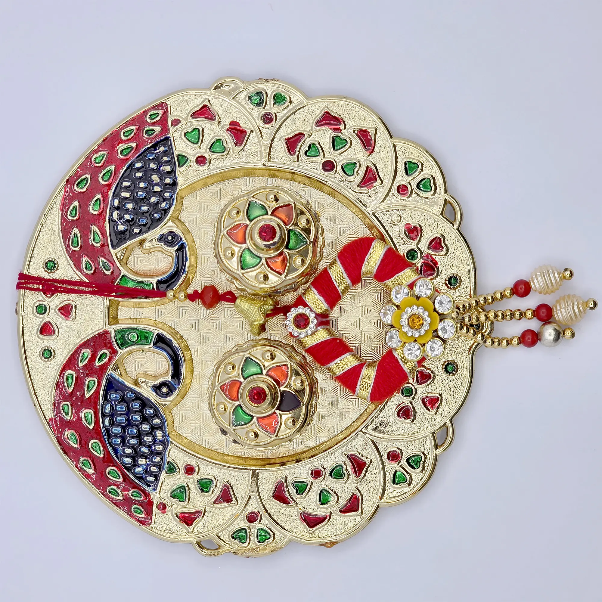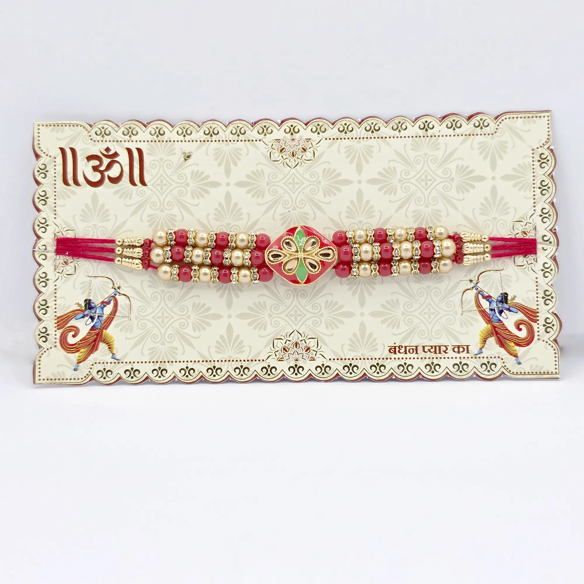 Celebrate the bond of brother and sister with this beautifully crafted Rakhi. Featuring a vibrant red and gold beaded design, this Rakhi is a symbol of love and protection. The Rakhi is presented on a decorative card with traditional artwork. Perfect for Raksha Bandhan, this Rakhi is a meaningful way to express your affection for your beloved brother.